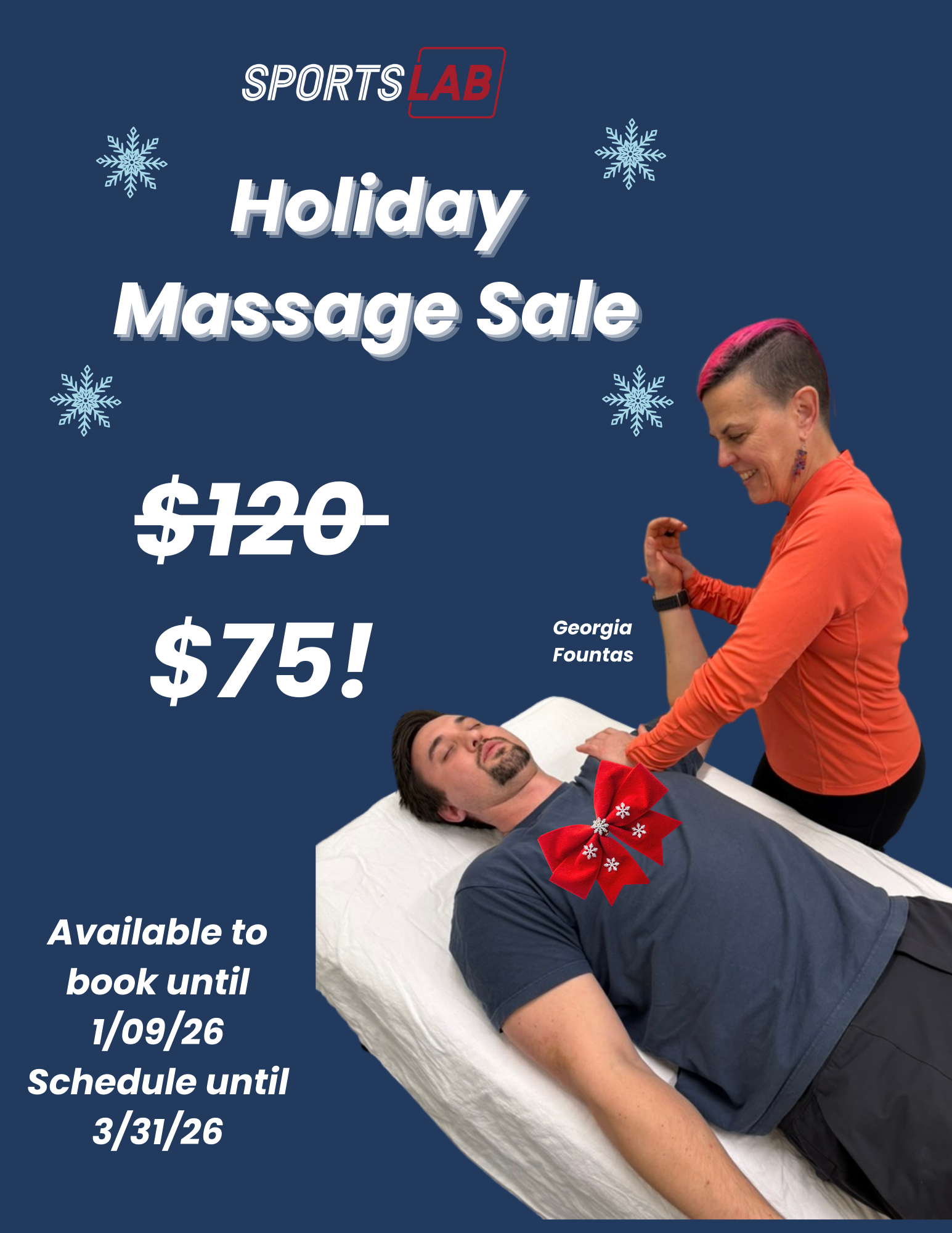 Holiday Massage Sale Happy Holidays! Don't miss out on this opportunity to take care of yourself or give the gift of a massage! This deal is available for all three of our LMTs. You must book the massage by January 9th, but massages can be scheduled out until March 31st, 2026. Book the Holiday Special Meet The Team Home Page